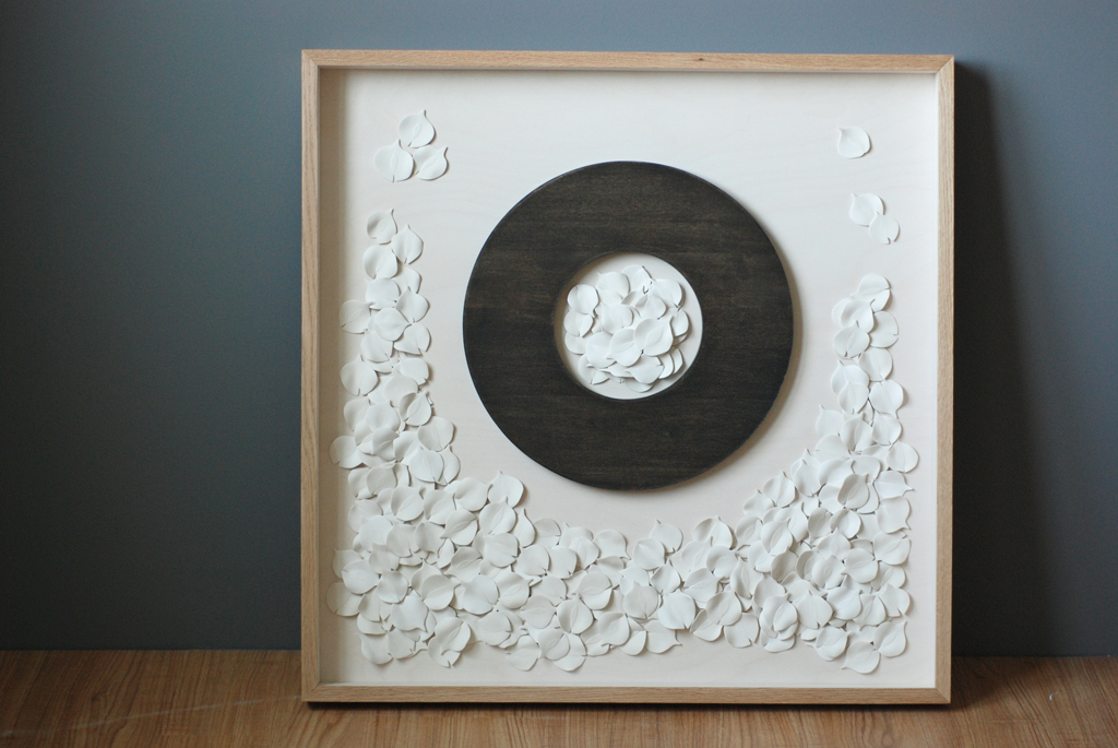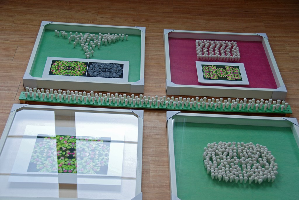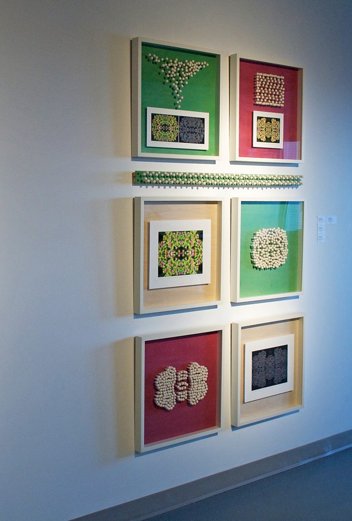 « Souvenirs d’enfance: la beauté au quotidien », porcelaine et estampes numériques, cadre de bois – Exposition « Muse Textile » – Centre des textiles contemporains de Montréal – 2008