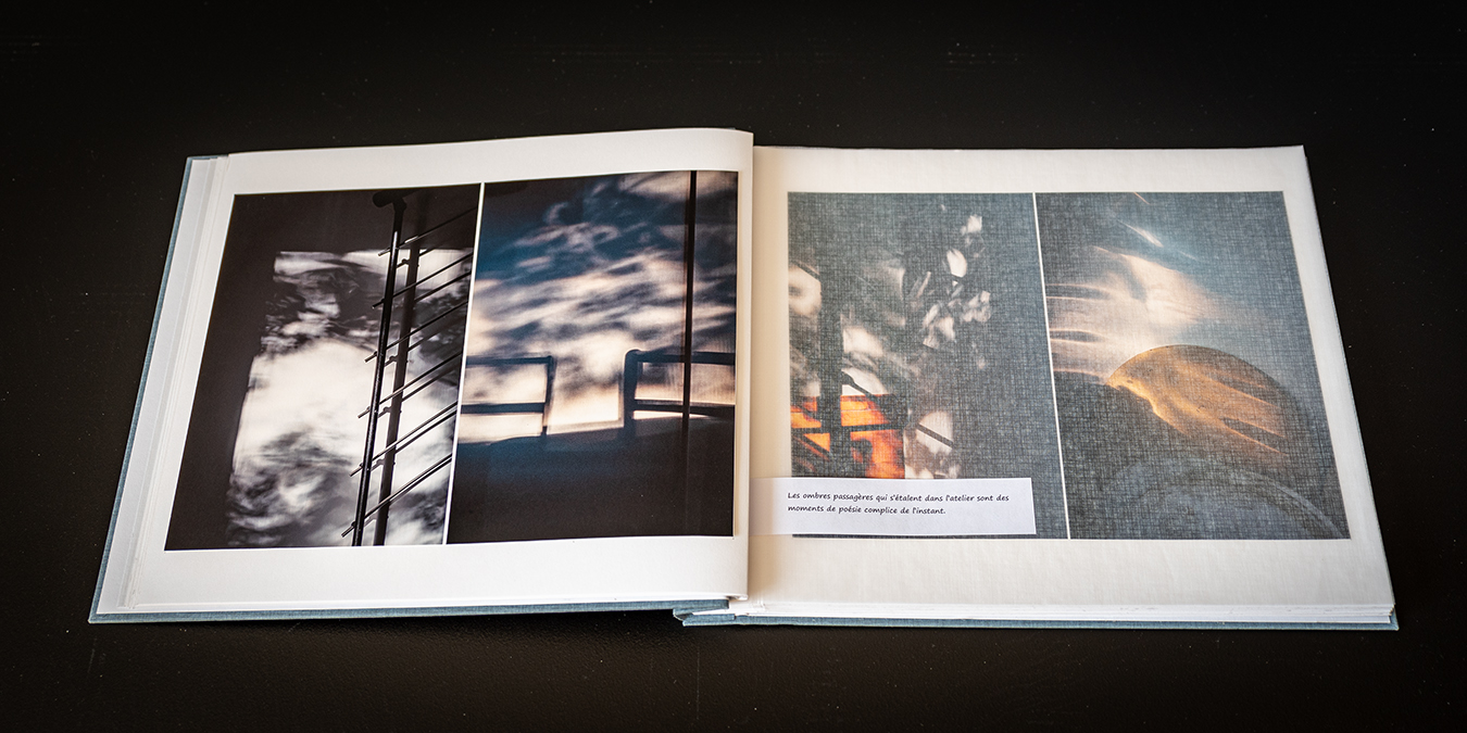 Les ombres passagères qui s’étalent dans l’atelier sont des moments de poésie complice de l’instant.