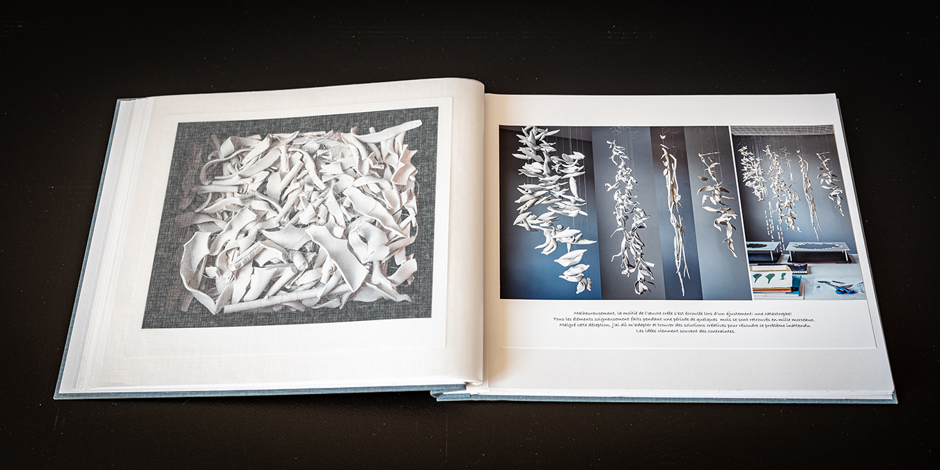 Malheureusement, la moitié de l’oeuvre créée s’est écroulée lors d’un ajustement: une catastrophe! Tous les éléments soigneusement faits pendant une période de quelques mois se sont retrouvés en mille morceaux. Malgré cette déception, j’ai dû m’adapter et trouver des solutions pour résoudre ce problème inattendu. Les idées viennent souvent des contraintes.