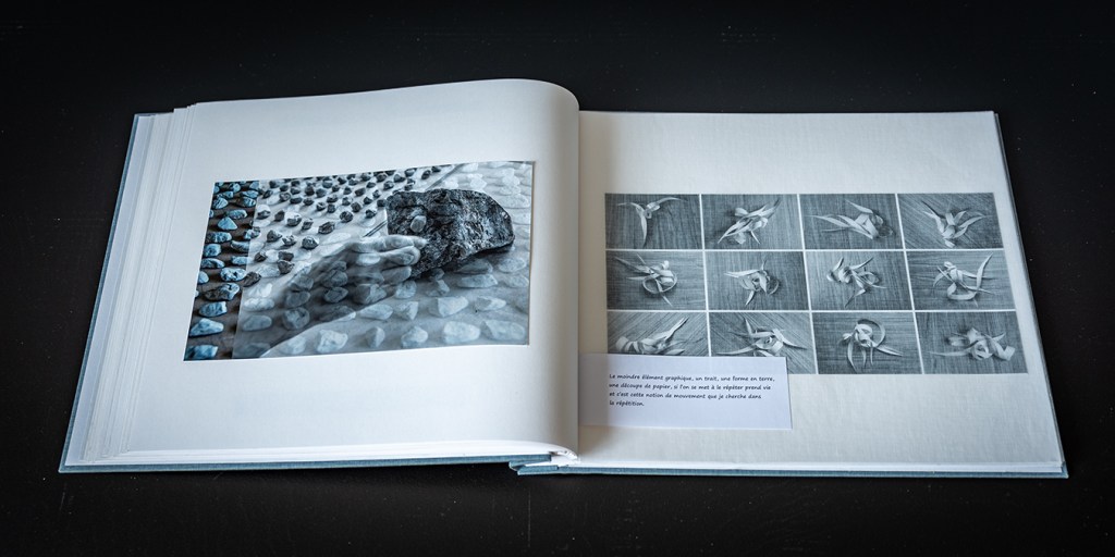 Le moindre élément graphique, un trait, une forme en terre, une découpe de papier, si l’on se met à le répéter prend vie et c’est cette notion de mouvement que je cherche dans la répétition,